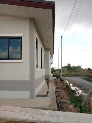 ลักษณะของบ้านชั้นเดียว ที่ได้ออกแบบด้วยสไตล์โมเดิร์น ที่มีโครงสร้างตัวบ้านยกพื้นต่ำ โดยผนังภายนอกตกแต่งด้วยโทนสีครีม ได้เพิ่มลูกเล่นไปด้วยด้วยโทนสีเทาและขาวเพื่อเพิ่มลูกเล่น ในส่วนหลังคาของบ้านออกแบบด้วยรูปทรงเพิงหมาแหงน ทำมุงด้วยหลังคาแบบเรียบ การผสานลงตัวไปกับรูปทรงโมเดิร์นของบ้านหลังนี้