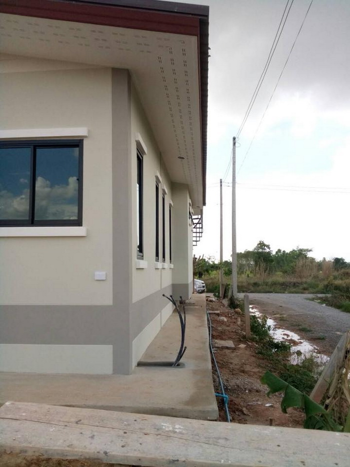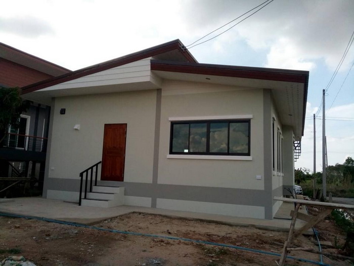 ลักษณะของบ้านชั้นเดียว ที่ได้ออกแบบด้วยสไตล์โมเดิร์น ที่มีโครงสร้างตัวบ้านยกพื้นต่ำ โดยผนังภายนอกตกแต่งด้วยโทนสีครีม ได้เพิ่มลูกเล่นไปด้วยด้วยโทนสีเทาและขาวเพื่อเพิ่มลูกเล่น ในส่วนหลังคาของบ้านออกแบบด้วยรูปทรงเพิงหมาแหงน ทำมุงด้วยหลังคาแบบเรียบ การผสานลงตัวไปกับรูปทรงโมเดิร์นของบ้านหลังนี้