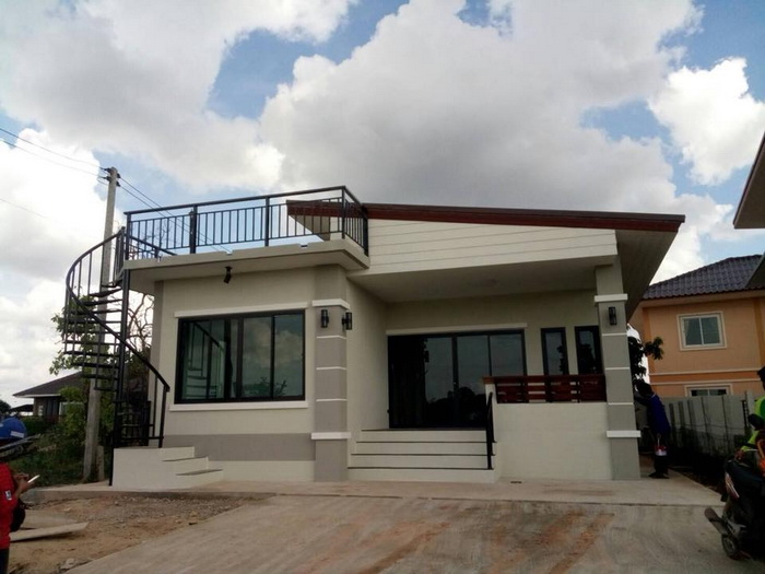 สำหรับ้านสไตล์โมเดิร์นพร้อมชั้นดาดฟ้าหลังนี้ประกอบไปด้วย 3 ห้องนอน 3 ห้องน้ำ 1 ห้องโถงใหญ่ 1 ครัวเล็กๆ 1 ชั้นดาดฟ้า ราคาเริ่มต้นที่ 1.35 ล้านบาท